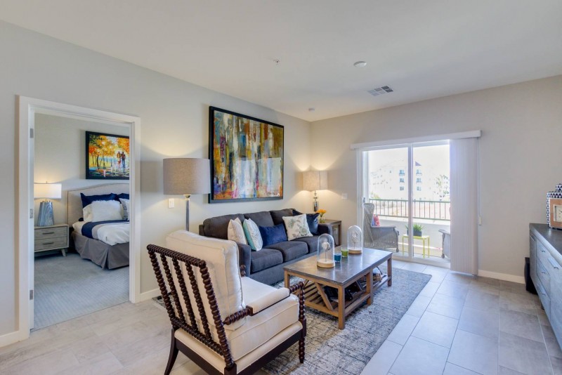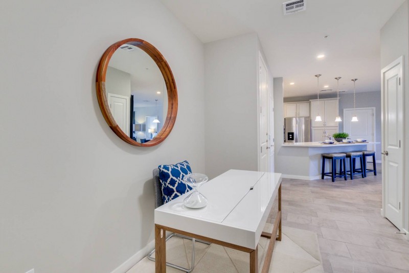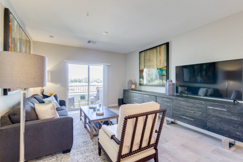 High-End resort retreat. Enjoy this 2 bedroom/2 bath luxury condo in The Cays at Downtown Ocotillo. Brand new condo, brand new furnishings, former model, ultimate comfort. Enter through a private entrance on the 2nd floor of this elevator building. Security building all the way. Parking is gated and underground with access right to your floor. Leave all your worries behind as we have thought of everything. Just you, your suitcase and your laptop and you can enjoy resort living. The kitchen is well equipped and boasts gorgeous quartz countertops, a breakfast bar, custom cabinets, a large pantry and, stainless appliances. In the open concept 1458 sq foot condo there is a separate dining table and a comfy living room. There is a 60" Smart TV and high-speed wifi. The split floor plan allows for privacy on either side of the condo/home. The Master Suite has a king sized bed with another TV and a beautiful en-suite oversized bath. The bath has a popular walk-in shower, double sinks and, a walk-in closet. Bedroom two has a queen bed and walk-in closet, with an en-suite bath. The separate office space allows for work and computer fun. There is also full-size laundry room in the condo for easy living. Super location and close to three major freeways, the 10, 202 and 101 giving you easy access to the entire valley. This condo offers 2 underground parking spaces, a huge bonus for any guest.
