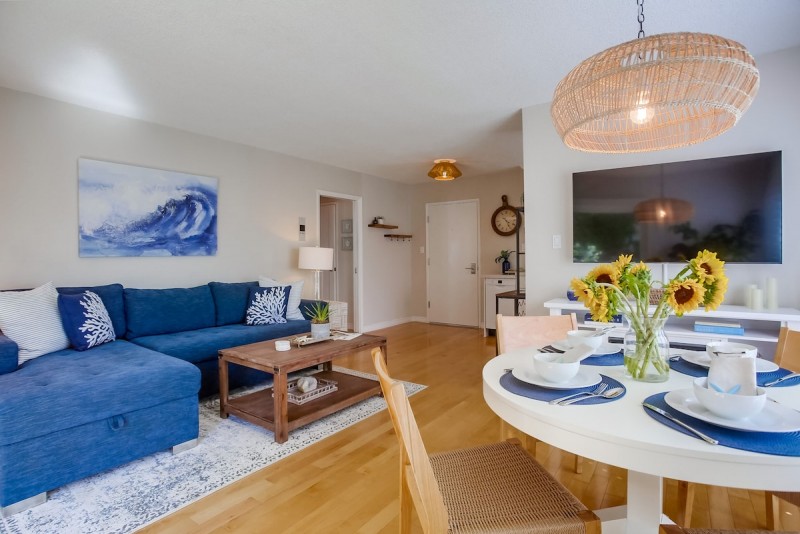 This updated condo is bright and airy with tasteful, comfortable furnishings and all the comforts of home.
