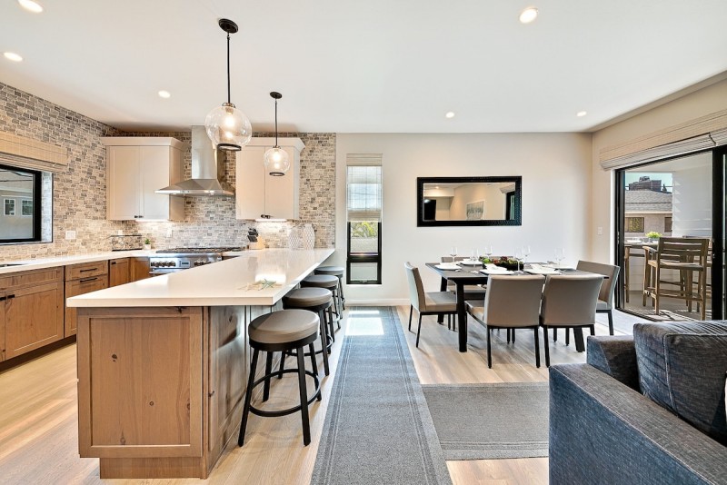 The second floor is also where you will find the gourmet kitchen with loads of counter space, all new appliances, and beautifully outfitted for all your cooking needs. There is a breakfast bar with seating for 4 and close by is the formal dining table which seats 6.