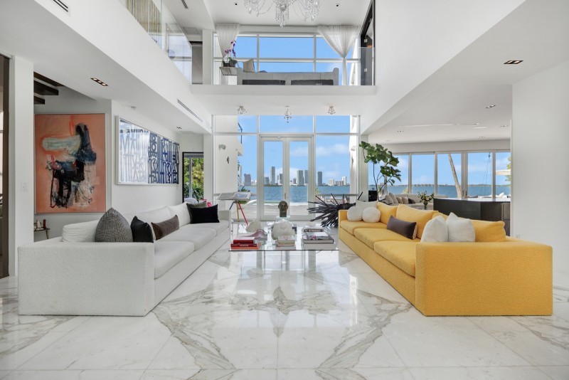 Effortlessly ascend between floors in a sleek glass elevator that serves all three levels. The sumptuous bedrooms each feature en-suite bathrooms and private balconies overlooking the water. Relax in spa-like bathrooms and enjoy state-of-the-art entertainment systems. Revel in the breathtaking 360-degree views from the expansive 1,700 square foot rooftop terrace with a private Boffi outdoor kitchen.
