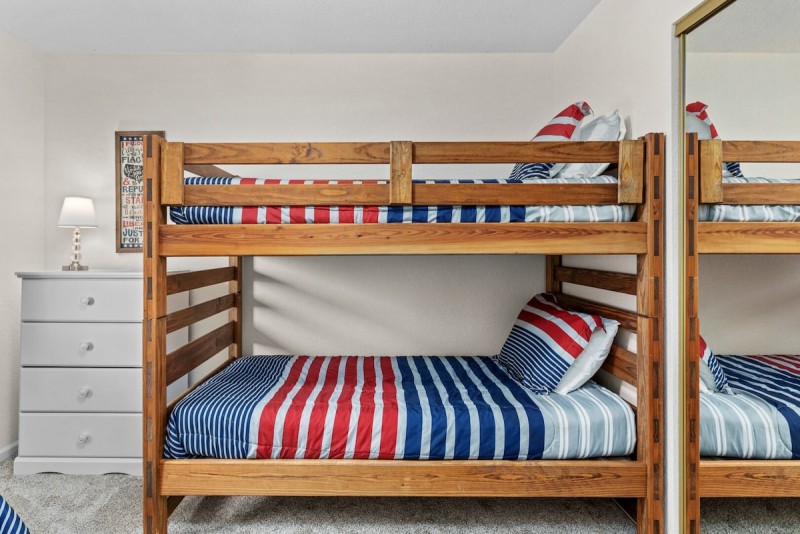 Retreat to the Master Suite with King Bed, private bath, TV/DVD, deck access, and a water view. The second bedroom with a King Bed and TV/DVD has an attached half bathroom. The third bedroom has two twin beds and TV/DVD, while the living room has a queen sofa sleeper (sleeps 8). There are 4 TV’s (each with DVD players), an electric grill, and a deck overlooking the water.