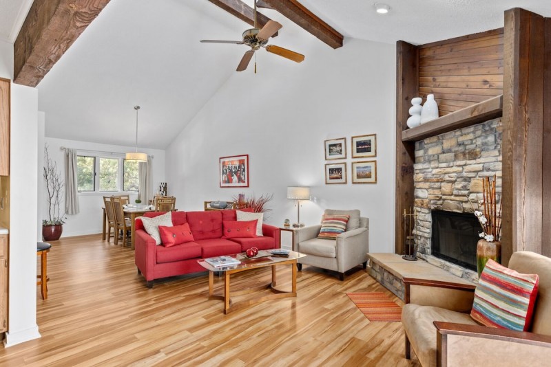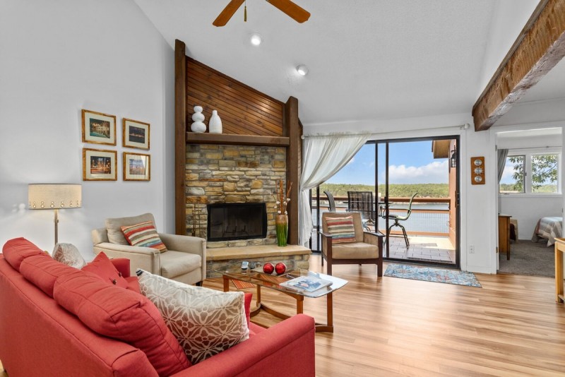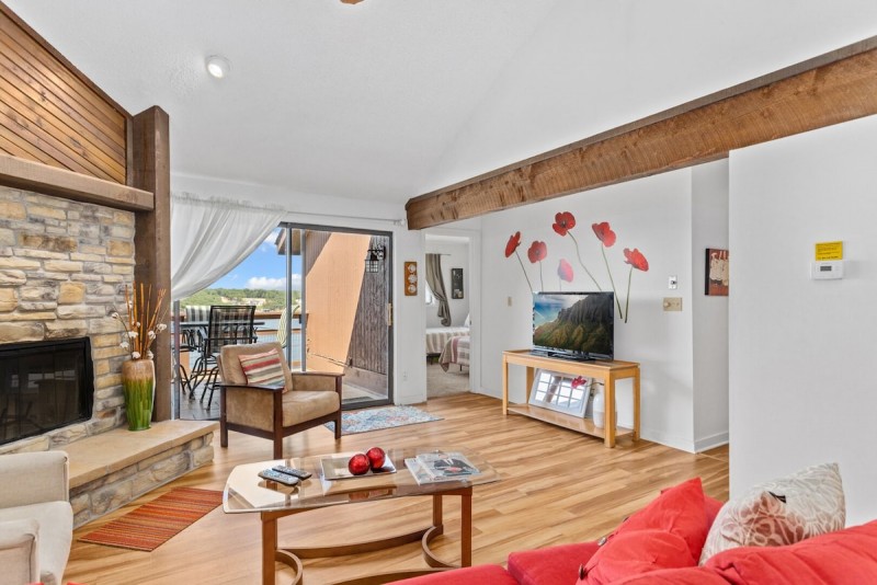 Amazing unobstructed view from this top floor waterfront 2 bedroom 2 bath condo. Step right into the newly updated laminate flooring to the dining room with seating for 6 at the table and 2 more at the breakfast bar. Also includes a dry bar opened up to the Living Room. Living Room features flat screen TV, wireless internet and slider deck access.