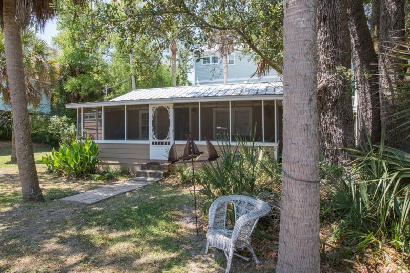 Great location just 3 short blocks from beach and business district. Located the perfect distance away from the noise but still an easy walk to both center street and the beach. It has all the amenities you are used to at home including good Wifi internet and a Smart TV so you can sync up Netfilx if you want, please note other than that it just has basic local channels. This is a cozy 900 sq ft beach house with one large multi-functional room which includes the kitchen and dining room on one side and the living room/TV area on the other. Three bedrooms offer a queen bed in one, full sized bunks in the second and twin sized bunks in the third. The house comfortably holds 6. The bathroom has a full sized washer/dryer and a stand up shower. There is also an outdoor shower with hot water. There is a great screened in porch to sip coffee in the morning or to take an afternoon nap. Outside there is a massive oak tree that shades the entire house and yard keeping it as cool as possible on those hot summer days.