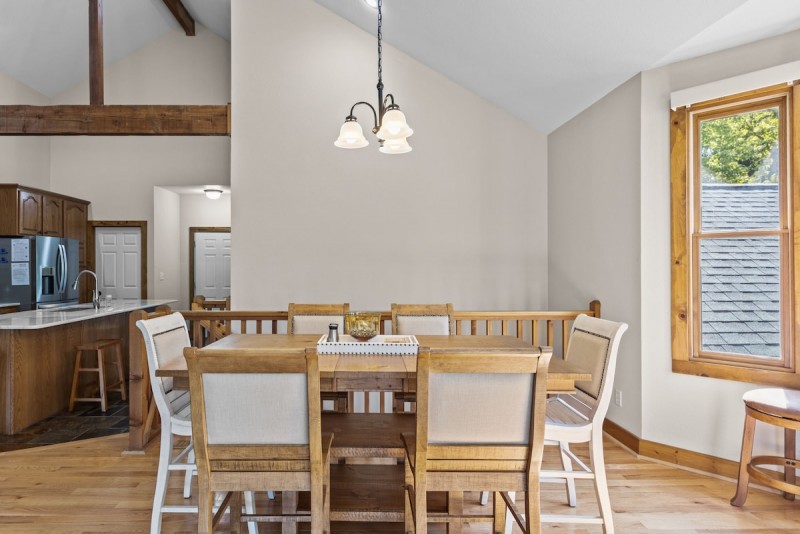 The dining room seat 6 comfortably at the table with 2 more bar stools at the breakfast bar and an additional 2 to pull up to either area. The kitchen comes well equipped and wide open with plenty of space. There is a gas grill located outside. Upstairs bedrooms: Master bedroom has a Queen bed and a Full bed, TV, ceiling fan and deck access. Master bathroom has a jet tub and standing shower. Bedroom 2 has a Queen bed, TV and ceiling fan. Guest bathroom on this level includes a tub/shower. Laundry room is located on the upper, main level of the home.