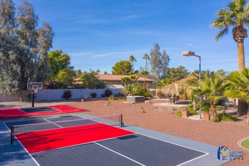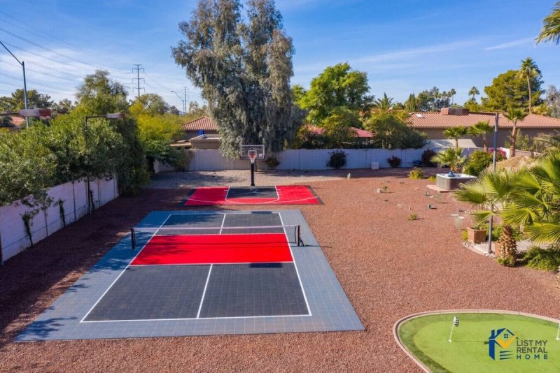 In the heart SCOTTSDALE, Perfect for Golfers, Group on Tours, Corporate Training, Meet-up & Family Reunions, Cool, modern design with all the comforts you desire. This home is gorgeous in every way! Make yourself at home and enjoy this gorgeous luxurious getaway with everything you need. Private yard & sport court & brand new putting green, built in ramada, Koi Pong with fresh Koi, Game room & pool table. Tons of indoor and outdoor seating, built in bbq. Hot tub, heated pool. Front patio seating,