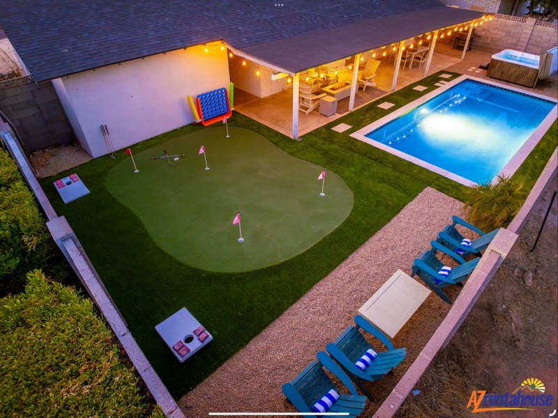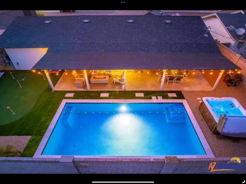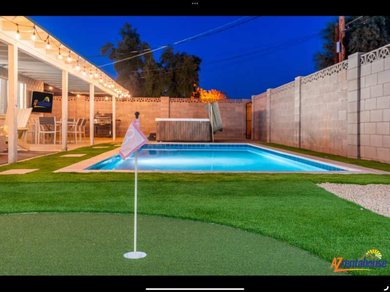 Welcome to your perfect Scottsdale getaway! Oldtown Oasis is everything you need for your desert escape. Our interior features modern aesthetics with comfortable beds, new appliances, & spacious accommodations. Plenty of outdoor living space we offer a variety of entertainment, putting green, bbq, YOUR OWN THEATER, hot tub, fire-pit, outdoor tv, corn hole & more. This home is in a perfect location only minutes from Old Town that offers an amenity filled great indoor/outdoor living experience