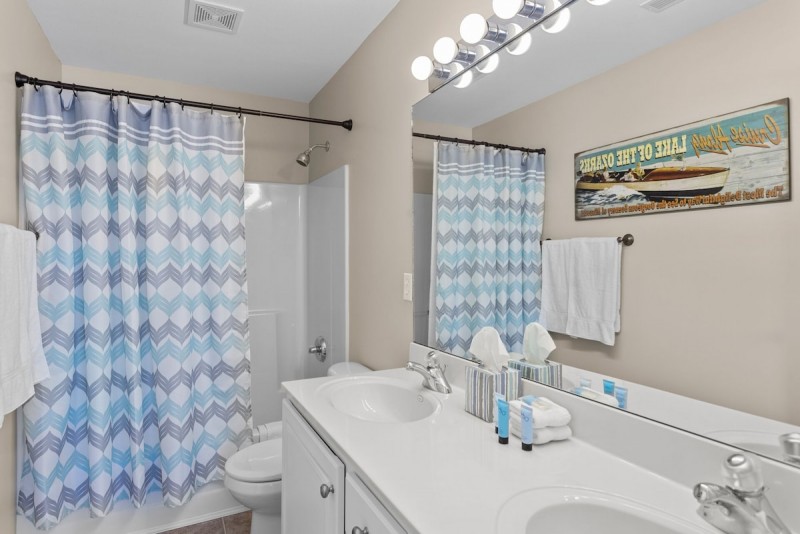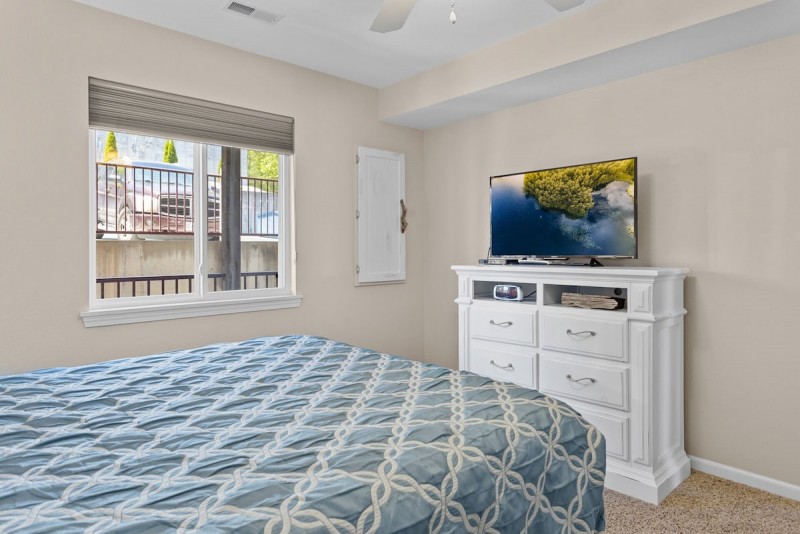 Living Room has plenty of seating, flat screen TV, Blu-ray DVD Player, Wireless Internet, Electric Fireplace, slider to deck and ceiling fan. Master Bedroom includes King bed, Flat Screen TV, slider to deck, ceiling fan and private bathroom with double sinks. Guest Bedroom has a Queen sized bed, flat screen TV, ceiling fan and access to Guest Bathroom with standup shower.