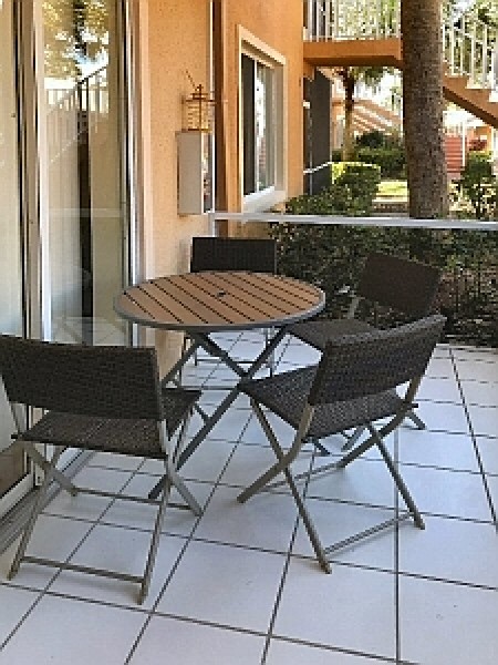 It has a terrace/balcony - called 'Lanai'. The lanai is screened - of course. The Lanai is SOUTH facing.