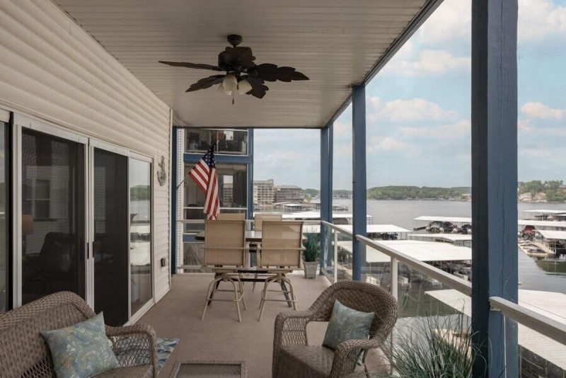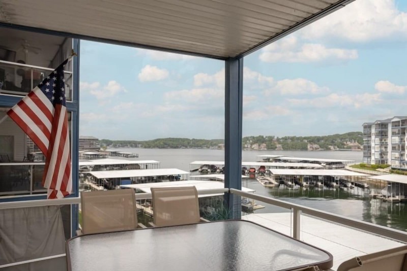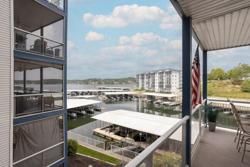 Located at Monarch Cove in Lake Ozark, this beautiful 3 bedroom, 3 bath waterfront condo offers a great view of the water from the wrap around deck! There's plenty of seating on the deck so you can enjoy the beautiful outdoors.