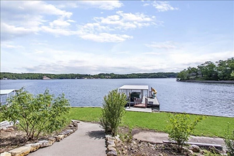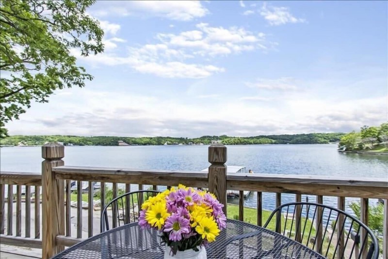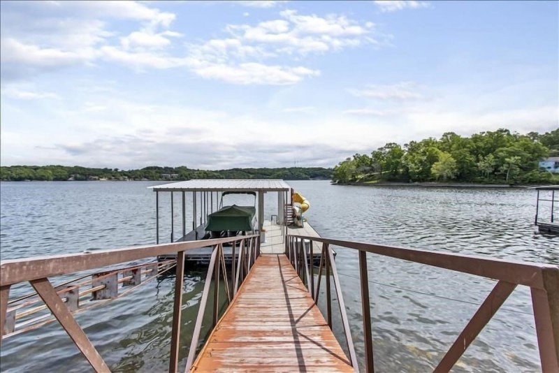 Outside enjoy the extra large lakeside deck with a fantastic lake view. If you are bringing a boat, there is room to tie up to the side of the shared dock located directly in front of the house. Please note your boat will be uncovered. The dock includes a swim platform and a slide for lake swimming. Please note the dock is shared with another property, so you may see others on the dock from time to time.