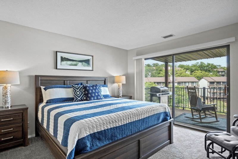 Outside on the extra large deck enjoy the pub sized 4-top table, 2 person glider, rocking chair and gas grill. Deck is covered and has a waterfront view. This unit comes complete with a 12 x 28 slip in the community dock. Unit is conveniently located on Horseshoe Bend Parkway and near restaurants, attractions and activities!