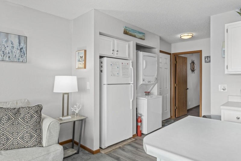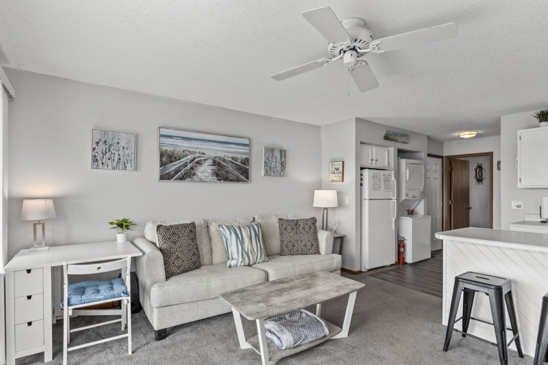 Enjoy a full kitchen, with all major appliances, living room with flat screen TV and a deck overlooking the water. In the bedroom, you'll find brand new furniture, a queen size bed and a flatscreen smart TV.