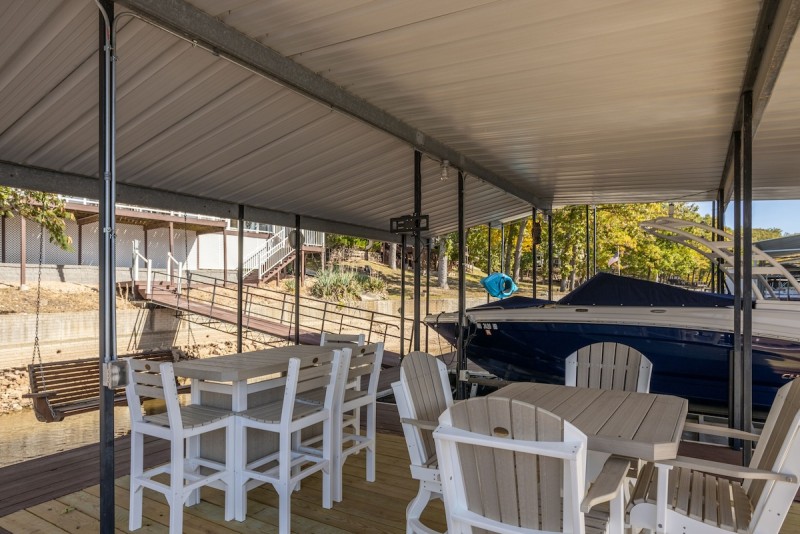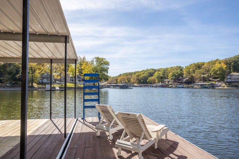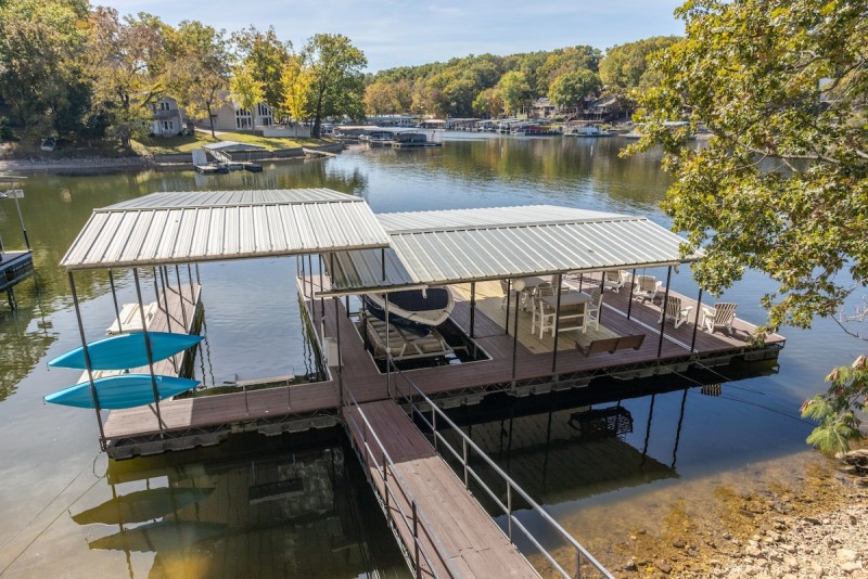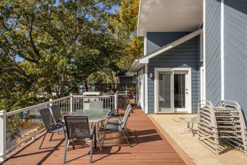 The living room opens up to the large deck area, featuring a 6-top table and a brand new griddle style BBQ grill. Bring your boat and/or PWCs beacuse this home comes with a private dock featuring a 12x32 boat slip and 2 PWC slips. You'll also be able to enjoy a large swim platform featuring wet steps, and 2 kayaks are available for your use. There's plenty of seating, at a 4-top table under the shade of dock or in the loungers for soaking up some sun!