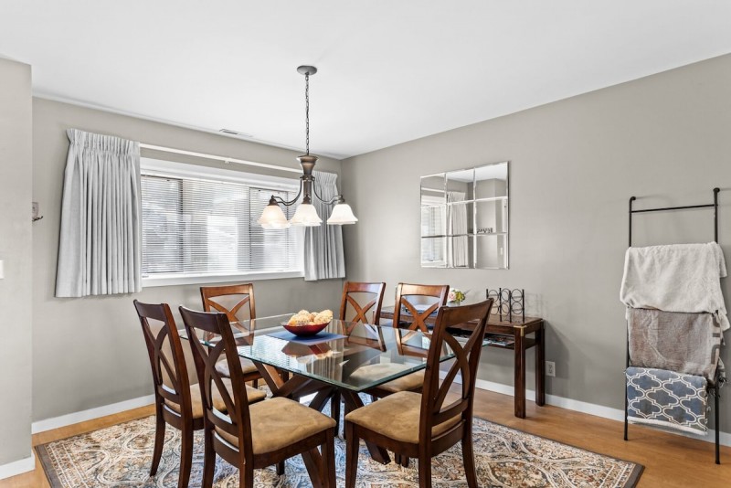 You can also enjoy the electric fireplace in the cooler months. The full size kitchen features all your major appliances, as well as everything you need to eat some meals right there at the condo.