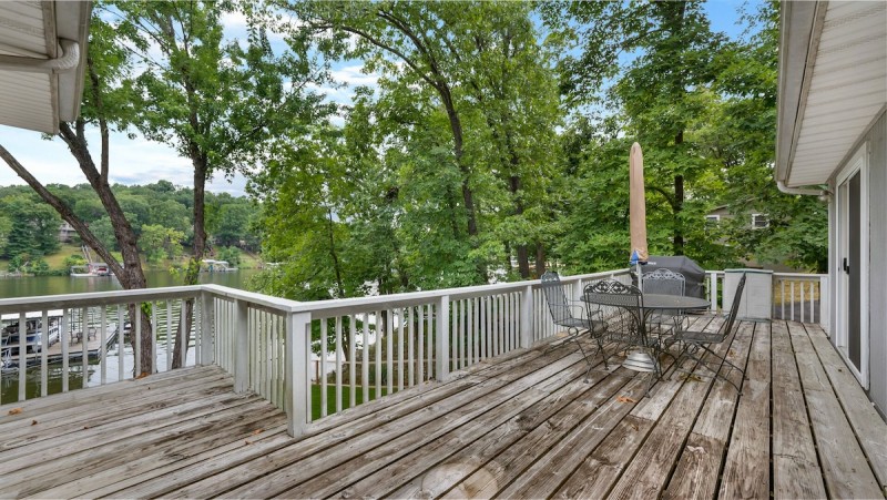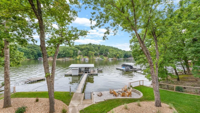 Outside, the large lakefront property has something to offer for everyone! The Upper Deck features a Natural Gas Weber Grill, and a 36" Natural Gas Blackstone Griddle. Enjoy the covered lower deck with plenty of seating, fenced back yard and lakeside gas fire pit. Enjoy the dock complete with a fish cleaning station as well as 2 swim platforms with 2 ladders! Bring your boat and your personal water craft! There is room for one boat under the dock cover (10x24ft slip), and two side ties for a second boat (26ft long) or your personal water craft. The ramp is at the end of the cove, providing easy access to the dock.