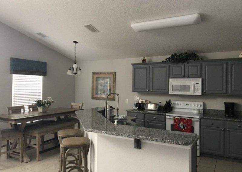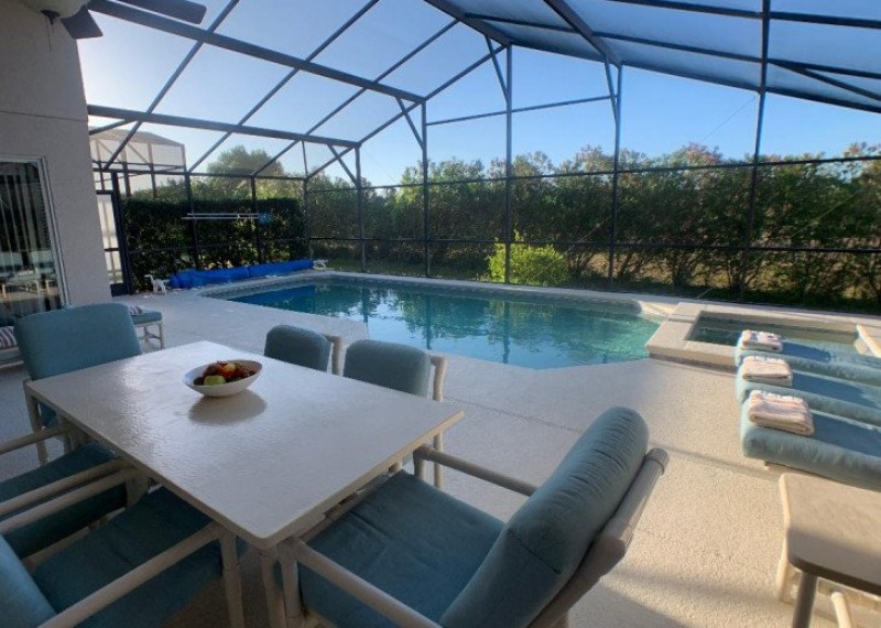 The fully screened south facing pool and spa (seperate spa heating available) has an enlarged deck and plenty of upgraded padded deck furniture making it the perfect place to relax after a tiring day at the attractions. Numerous pool toys have also been provided and are stored in a container on the pool deck. There is also a poolside toilet and outside shower for added comfort and convenience.
