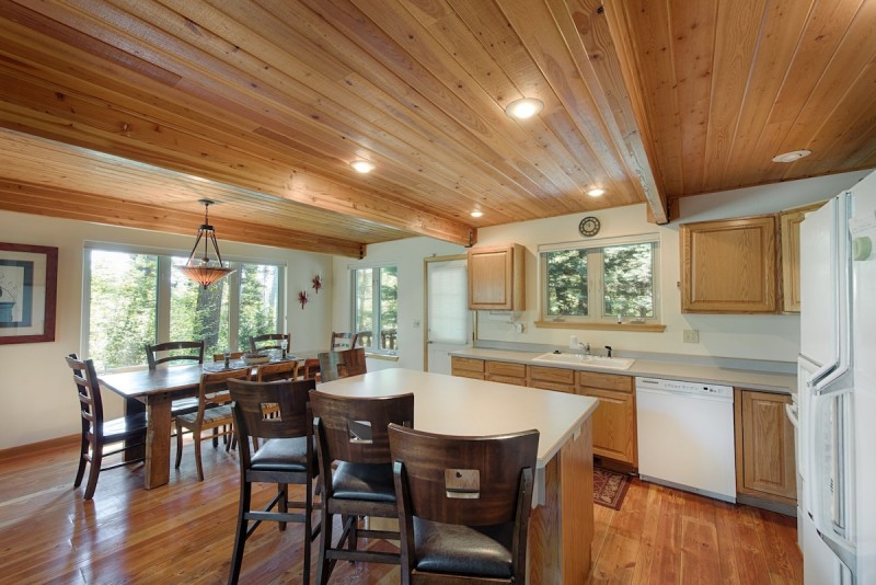 Accommodate up to 11 guests in 3 private bedrooms, 3 bathrooms, the daylight basement bunk room/ lounge, and in the loft lounge with sofa sleeper. One of the private bedrooms is located downstairs and has a queen bed and hall access bathroom with a large shower for two. Upstairs are the additional two bedrooms, one with a queen and one with a full-size bed. The basement bunk room has a twin over twin bunk set and a foam floor mattress. The well-equipped kitchen has everything your group's chef could need to craft culinary perfection, including a large gas grill on the deck.