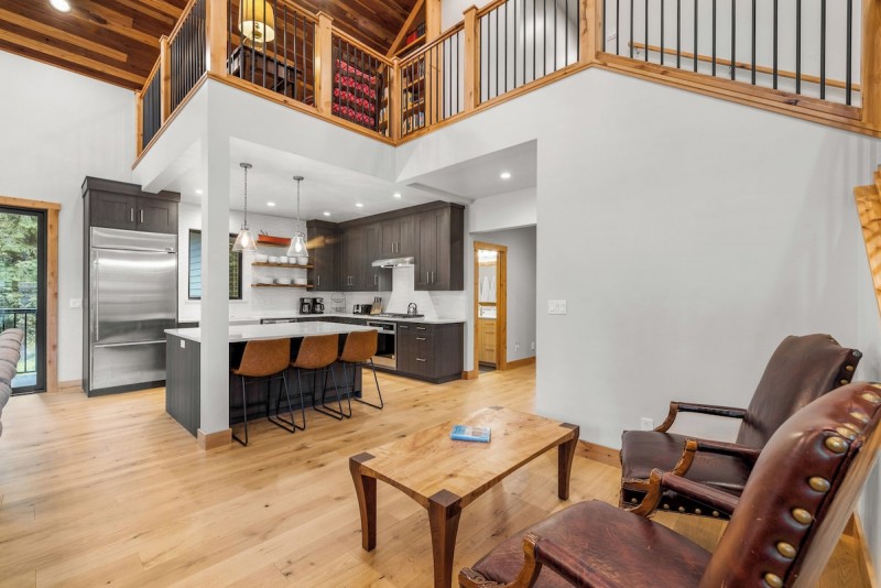 To add to the stunning surroundings, this vacation rental offers ample outdoor living space for you to relax and unwind. Whether you prefer to swing on the swings specially designed for kids, lounge on the deck in the open air, soak in the hot tub, or tell stories around the fire pit, you'll find a perfect spot to enjoy the serenity.