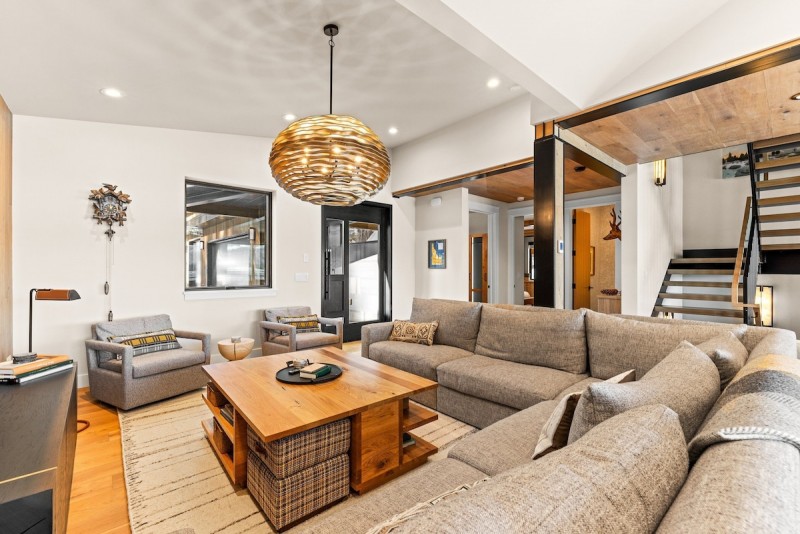 Unobstructed views of Payette Lake abound in this large family home with private lakefront property and a private dock. Floor-to-ceiling glass on the main and upper levels brings nature indoors. Multi-panel sliding glass doors and pass-through kitchen windows provide indoor/outdoor lakefront patio and bar space. This house is thoughtfully designed to meet the needs of a large extended family, allowing functional and efficient space to gather comfortably.