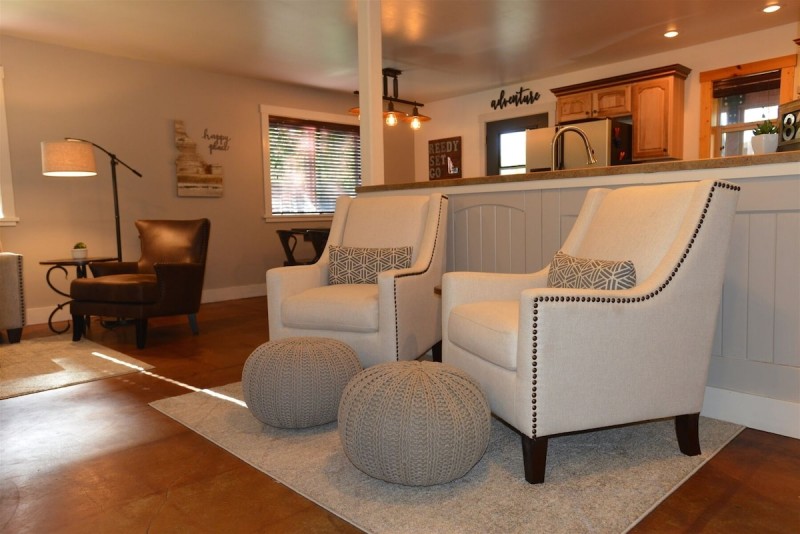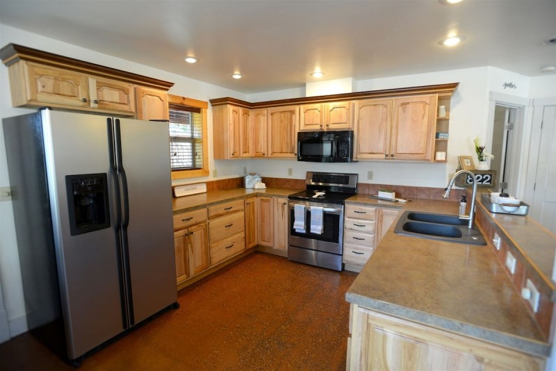The downstairs living room features comfy seating and an electric fireplace insert for warmth and ambiance. There is a hall access guest bathroom downstairs as well. The home features clean, radiant floor heat throughout the downstairs and wall convection heaters upstairs. The well-equipped kitchen is perfect for creating memorable meals for family and friends. Take the party outdoors and have the grill master cook up something on the gas BBQ. Guests will appreciate the bug-free, screened in porch for al fresco dining. Lounge, sunbathe, or take in an alpine sunset on the raised deck, or enjoy the established lawn, fully fenced yard, and fire pit. Guests have access to the two-car garage and driveway parking.