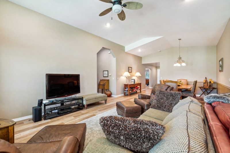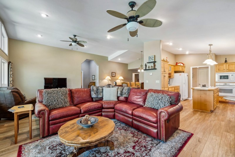 As the day unfolds, find your way to the covered back deck where you can savor the breathtaking views of the McCall golf course. In the summer, you can enjoy grilling up your favorite meal, lounging with a good book, or simply reveling in the serene ambiance. In the evening, gather around the firepit in the backyard, sharing stories and laughter with friends and family. In the winter, you can step out your backdoor, slip on your cross-country skis and skate across the golf course. This charming residence offers not just a serene atmosphere but also promises excitement and adventure for everyone, making it the perfect setting to create timeless memories.