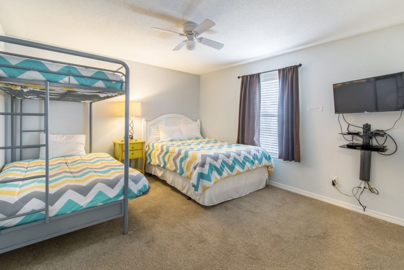 2nd Bedroom ('Family Style') has a queen size bed and a bunk bed with twin over full.