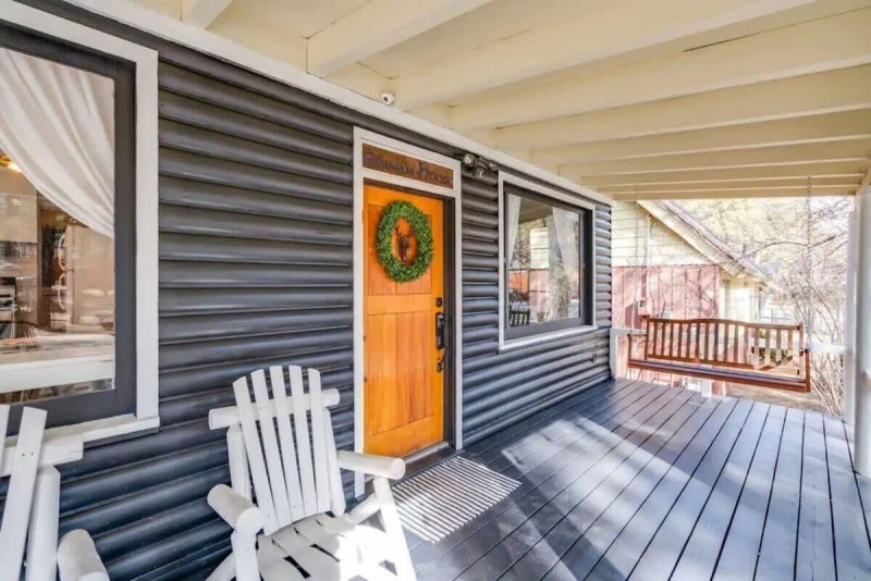 Welcome friends! Take it easy at this unique and tranquil getaway while listening to wildlife and breathing fresh mountain air under a canopy of stars. Barbecue on a grill and dine under the pines, then add logs to a wood stove before climbing stairs to comfy bedrooms. Centrally located, we are just a three-minute drive to the pristine waters of Big Bear Lake, Pine Knot Village & the slopes of Snow Summit Ski Resort.