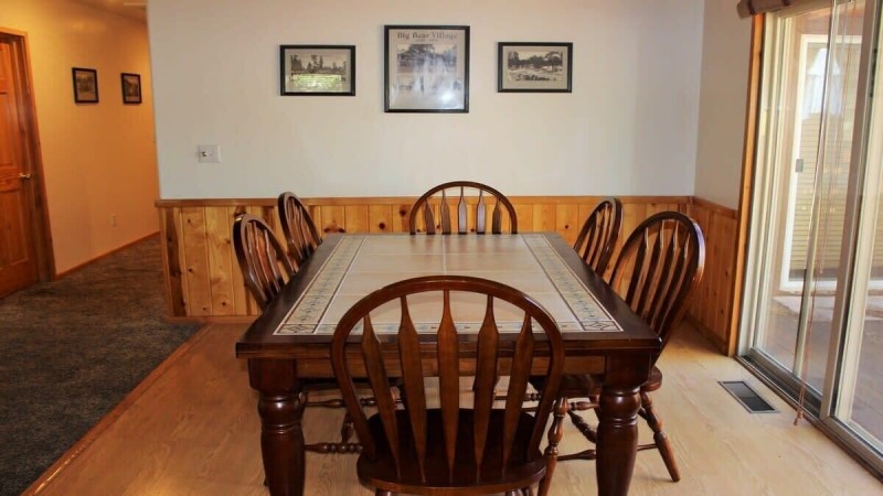 Step into mountain luxury as you enter into the comfortable Living Room, which features a beautiful Fireplace (wood provided!), Big Flat Screen TV w/ DVD, and plenty of comfortable seating. The adjacent Kitchen is fully equipped with everything you need to create a gourmet meal. The Dining Table seats 6 with island bar seating for the rest of your group.