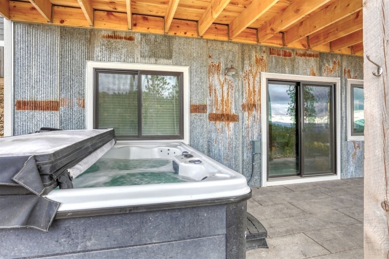 The lower level offers a 3rd living space. This area features a heated floor and is packed with fun things to do - including a foosball table, table for playing cards or board games, a leather sectional and TV. There's two more bedrooms on the lower level, both with a queen bed and bunk beds. You can also walk out onto the covered patio and enjoy the large 6-8 man hot tub and take in the scenery.