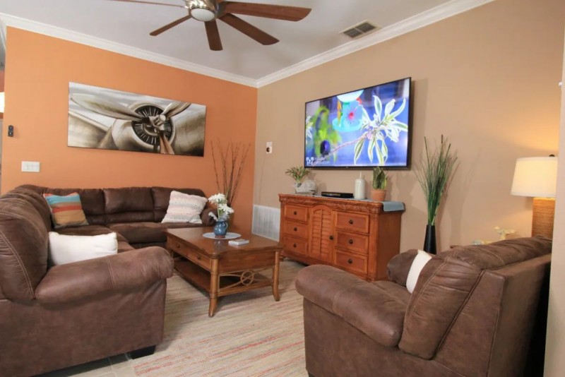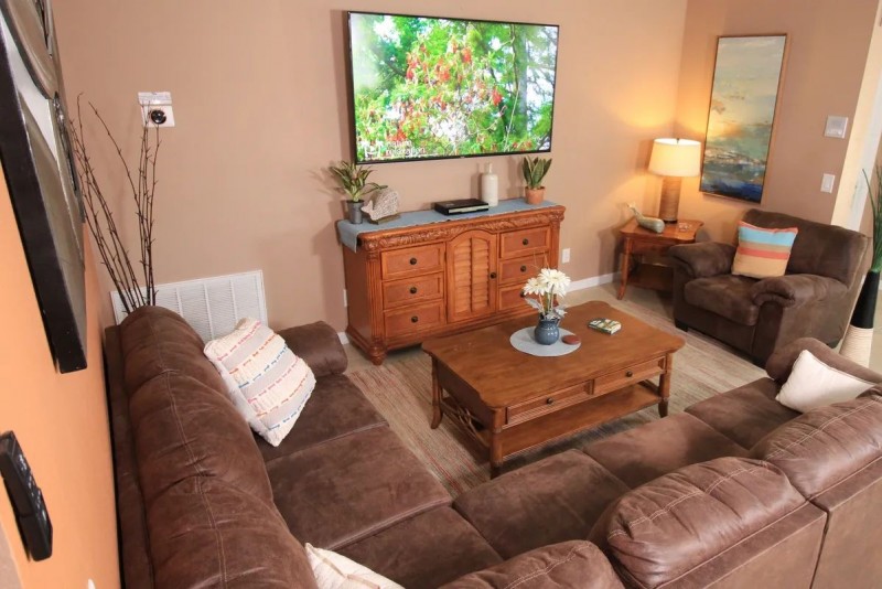 This Spanish style home abuts conservation land providing privacy and excellent wildlife viewing opportunities. With 5 bedrooms, 5 bathrooms, 2 living rooms, 2 dining areas, and 2 outdoor dining sets we can accommodate even large families. It's perfect for golf trips or girlfriend get-aways. The master suite features an en-suite bathroom with double sinks, water closet, jetted soaking tub, walk-in shower, and walk-in closet. All bedrooms have flat screen TVs. The kitchen