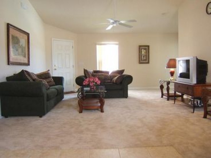 Brand New 4 Bed 3 Bath Single House Villa with pool/Spa in conservation area Our 2005 newly built villa is in the executive development at Sandy Ridge. This is in a quiet development surrounded by conservation woodland but is only under 15 minutes drive from the Disney theme parks. Its convenient location also means that you can reach Universal Studios in less than 30 minutes and Seaworld in 20 minutes. Orlando Airport is 30 minutes drive. The villa is 5 minutes from nearest shops including supermarket, pharmacist, fast food and petrol station at junction 28, Champions gate exit, of the I4, more shops and restaurants available a little further on the 192 highway. Our villa is a 4 bedroom 3 bathroom property with almost 1800 square feet of living accommodation. It is on a wide plot with conservation woodland views to the rear and has a 30ft x 15ft luxury swimming pool which has optional heating. The pool is west facing giving excellent exposure to the sun and is ideal to come home to and relax after a busy day out. There are sun loungers, patio table and chairs for your enjoyment with covered lanai and ceiling fan. There are two master bedrooms both with en-suite facilities, one queen bed and one twin bedrooms with their own bathroom. One master bedroom has a queen sized bed and walk in wardrobe and the other has a king sized bed and all bedrooms have ample built in wardrobe space. We have a cot and high chair available if required. A fully fitted kitchen makes catering easy, and there is a separate laundry room. Adjacent to the kitchen is a beautiful separated dinning with a breakfast table. The lovely family lounge which has patio doors to the pool area has two sofas and an armchair and TV/DVD. There is a separate lounge adjacent again with two sofas and armchair and within this area is a formal dining area which comfortably seats 6 people. There are also additional TV/DVD systems and a playstation so that everyone is catered for including the children. The villa is fully air conditioned and there are ceiling fans in every room in order to keep you cool on those hot Florida days. Everything you should possibly need is provided for you. All you should need to bring is your swimsuit. Direction to Sandy Ridge Community from Airport - I-4W: Take I-4 West, then take exit #58 from I-4, turn left onto 532 east, drive about 2.5 miles, turn right onto Sandy Ridge Drive, which is the main street of Sandy Ridge Community.