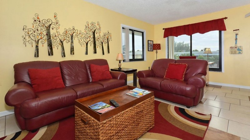 This beautiful, nicely renovated Anna Maria Island beachfront upper unit rental with 2 bedrooms and 2 full baths. You will be surrounded by all the luxuries of home including an in unit NEW Full Size washer/dryer, 50' flat screen TV in living room, 32' in Master and a 24 inch in the 2nd bedroom. Nicely remodeled and completely assembled kitchen including side-by-side refrigerator with icemaker, glass top range and dishwasher (all new stainless steel). Brand new Full size washer/dryer set. The entire condo has been remodeled. It is complete with nicely updated furniture, fixtures, beds, etc. With it's contemporary design, amazing views and lazy walks on the beach you will never want to leave!