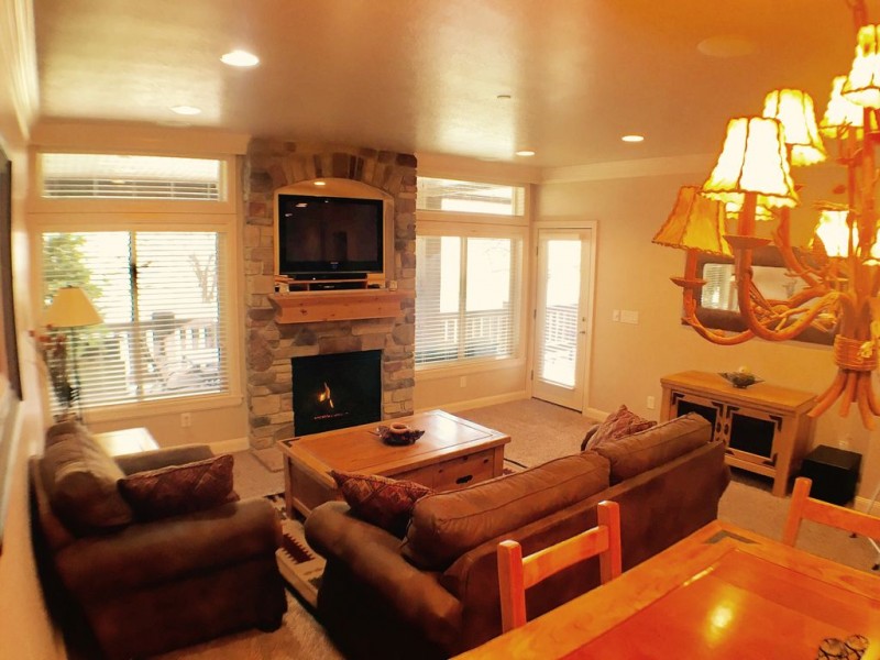 Luxury 3 bedroom, 2.5 bath condo with open and spacious floor-plan! Large living room, dining area and kitchen on main floor. Master Suite with Jacuzzi also on main floor. Large family room and 2 bedrooms, downstairs. Surround sound available throughout. Oversized patio, naturally treated hot tub, gas grill and plenty of patio seating, accessible via living room and Master Suite. Garage and additional parking available for guest use. Condo can accommodate up to 14 people.