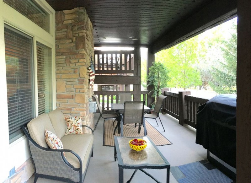 Private over-sized covered patio has a large grill and a naturally treated 5-6 person hot tub.