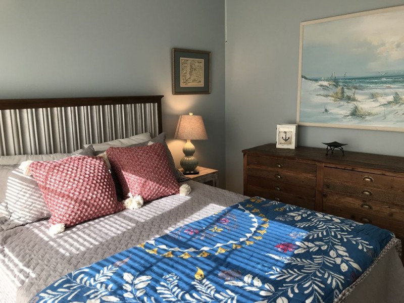 Point of View Condo is a 2 bedroom, 1 bathroom tastefully appointed property boasting gorgeous distant water views and spectacular sunrises. Each bedroom has a queen bed, and a living room sofa that can be made up into a queen bed, increasing the capacity of this cozy cottage to 6. The front deck offers pond views that are simply serene and the front porch has views straight out to the Atlantic Ocean. A common outdoor area offers circular al fresco tables, a grill, and heated outdoor shower. Point of View guests enjoy a private beach parking pass & complimentary WiFi.