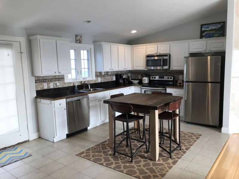 There are two beach parking entrances included with the pass located at Atlantic Avenue and Benson Avenue (near the Pleasant View Inn), and Atlantic and Lawton Avenue (near the Andrea). The property features a heated outdoor shower. I provide linens for the beds and couch. The living area is spacious and bright with cathedral ceilings, large bathroom, hardwood and tile floors, central vacuum, front deck with Adirondack chairs for pond viewing, and back balcony with picnic table to enjoy distant ocean views.