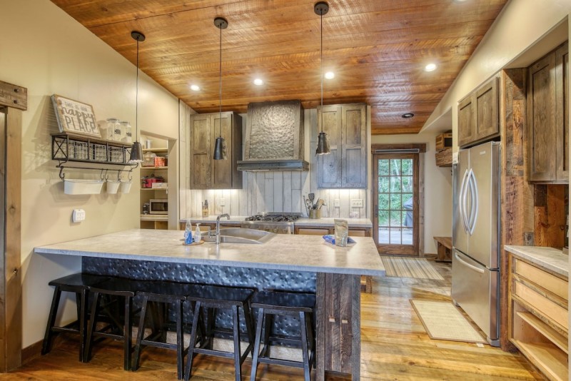 Upstairs to the main house level you will find a welcoming, open floor plan with kitchen and living area. The kitchen has everything you need to make meals. There are 3 bedrooms, 2 with queen size beds and the 3rd is a bunk room with 2 sets of full-size bunk beds. Climb up the ladder to a loft with 2 twin beds and you'll find another sleeping space off the bunk room with a queen bed.