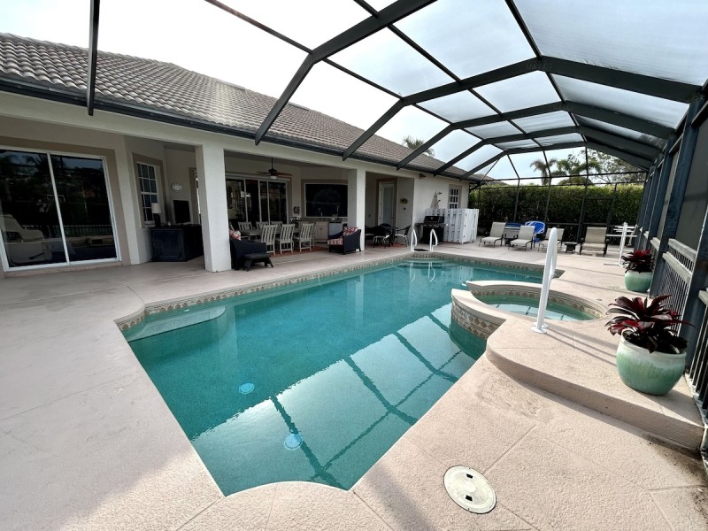There is a pool alarm in place for your safety. All sporting equipment (bikes, tennis rackets, basketball, four sets of golf clubs, bocce, pickle ball and shuffleboard equipment, life preservers and pool toys) are included and the laundry room has a washer, dryer, iron and ironing board.