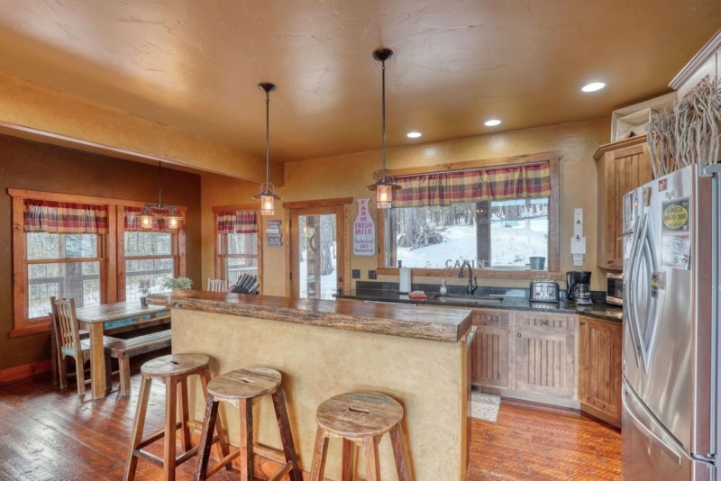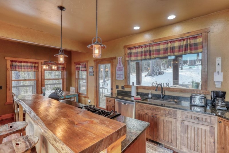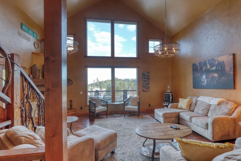 Located in the desirable Gilded Mountain Community near Deadwood, South Dakota, this 4 bedroom cabin offers the perfect space for families of all sizes to enjoy the outdoors. Up to 10 guests can relax comfortably, and enjoy the wonderful views off the wrap around deck. Its private location on the top of a hill, spacious main living area with gas fireplace & beautiful picture windows make it one of our more popular vacation homes.