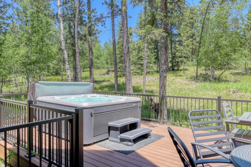 Off the back side of the cabin you'll find a large deck with private hot tub, seating and Gas BBQ Grill. Relax and enjoy the views and peacefulness of the Black Hills!