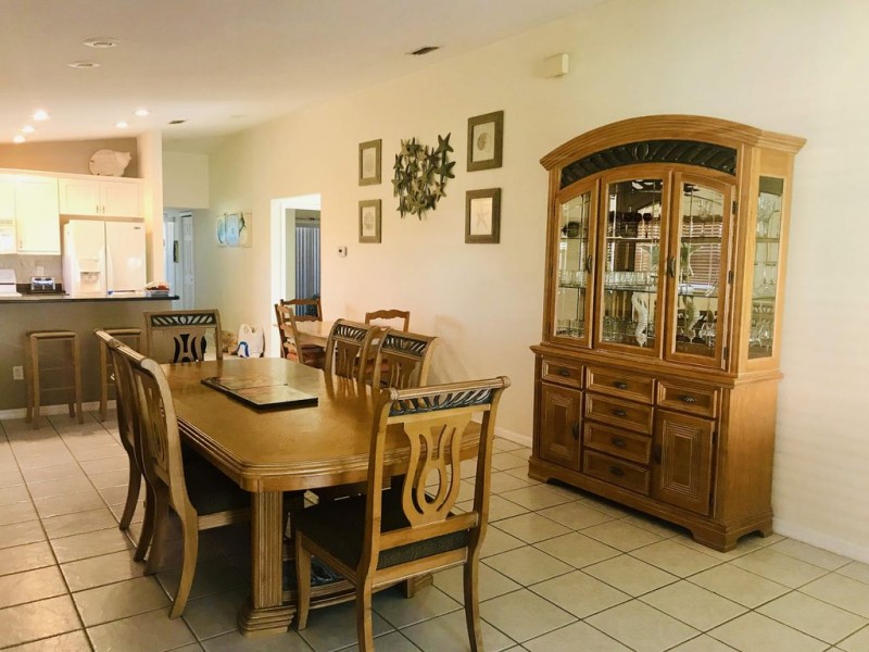 The dining area seats six around a large formal table. There is ample cupboard and drawer space and several books to sit back and enjoy at your pleasure.