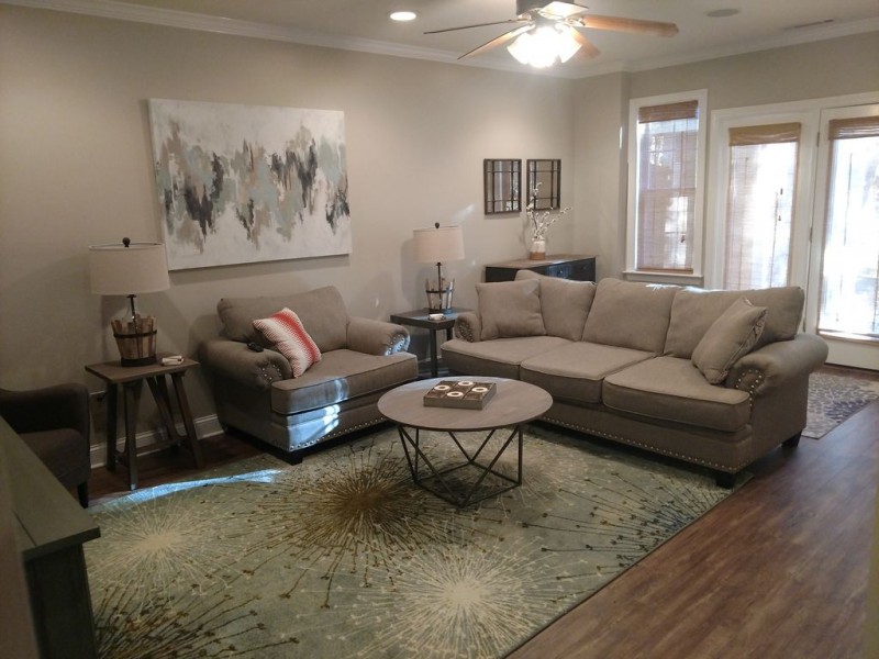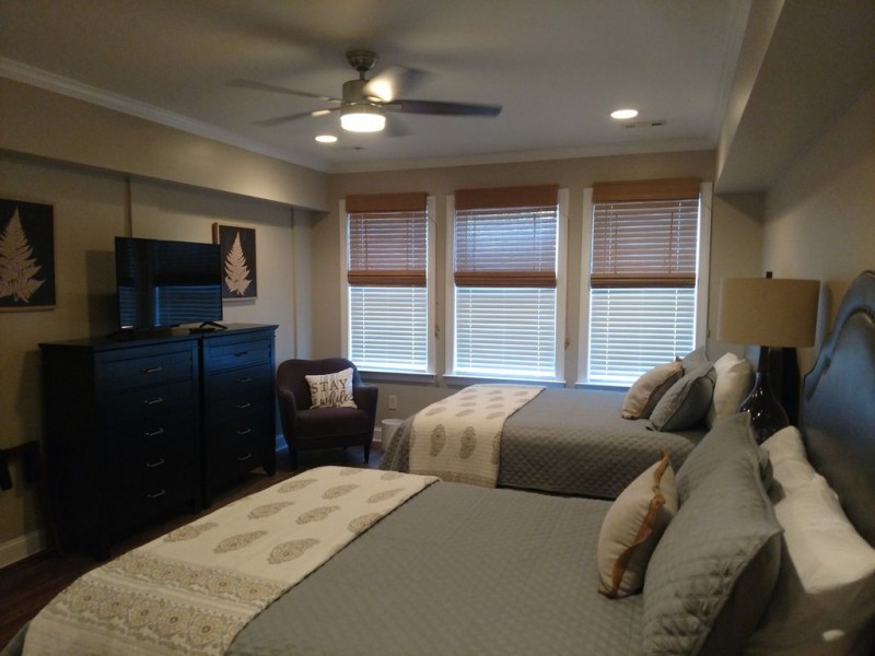 A brand new, fully furnished, self contained Terrace Apartment in Peachtree City, Ga. Enjoy a large family room w/big screen TV, spacious Master bedroom with two queen beds with super quality mattresses, a study/office with a sofa bed. Fully equipped eat-in shaker style kitchen with stainless steel appliances, including M/w, D/w and Washer/Dryer combo. Off street parking adjacent to your entry door. Safe and quiet. Close to shopping, restaurants, parks and more. Contact host for further info.