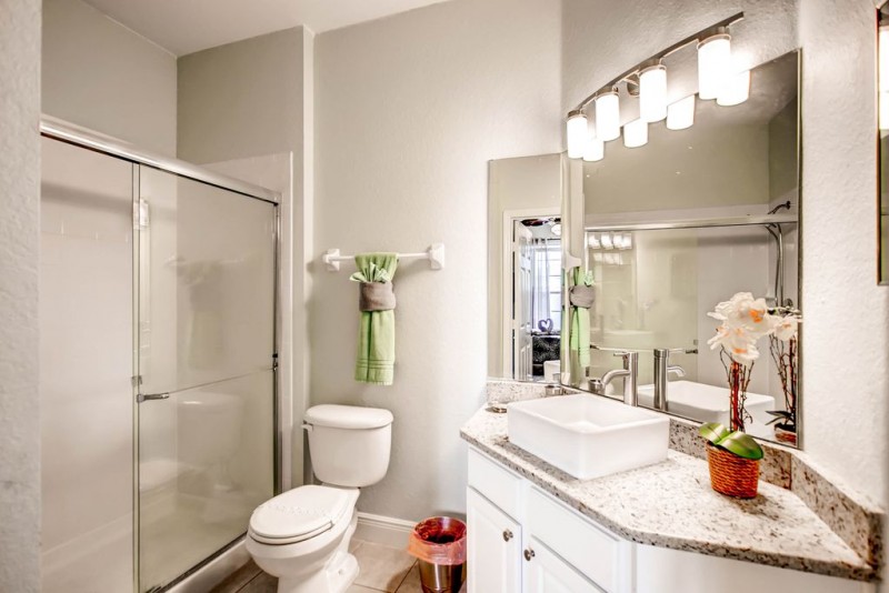 Across the hallway is the Mickey themed bathroom with dual head shower/ hand shower for a quick shower for your little ones.