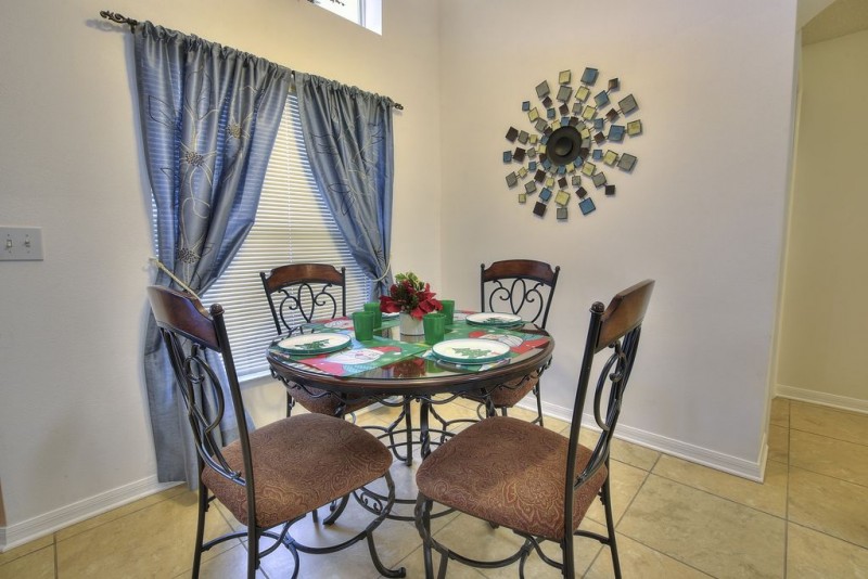 Mickey’s Family Bungalow is a beautiful vacation rental home 5 minutes from Walt Disney World in Kissimmee, Florida. It has 4 bedrooms and 3 full bathrooms, including 2 master suites. This spacious villa sleeps 8 people in total comfort. The great room boasts a large, combined living and dining area which is open to the nearby kitchen and breakfast nook. The southern facing swimming pool with attached spa sits on a private pool deck surrounded by a screen enclosure and hedges for privacy. No vacation home is complete without a game room and this one is no exception, featuring a pool table, air hockey table, two pinball machines and a 40-inch TV. In all, there are 6 flat-screen TV’s in this bungalow. Let’s explore all the amenities in more detail!