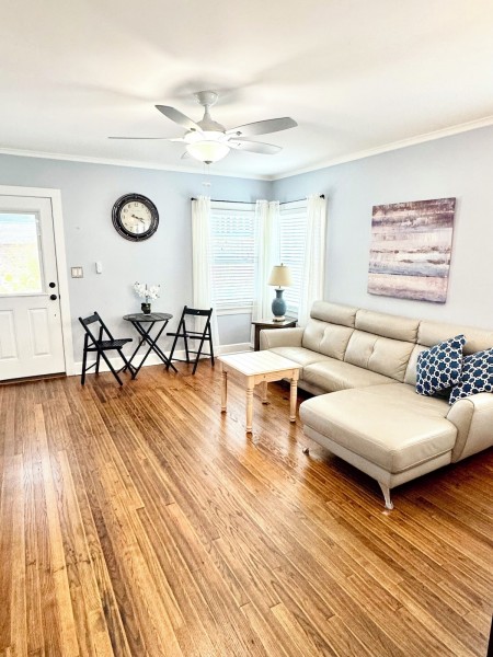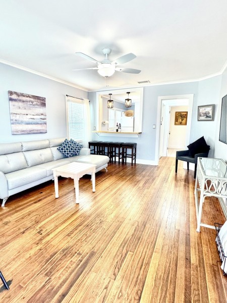 Completely furnished 2 Bedroom, 1 full Bath (Jack and Jill) great for privacy and 1/2 bath each bedroom is furnished with queen size beds. Courtyard available for grilling and outdoor family gatherings. Up to 3 parking spaces for your needs. Full size washer/dryer available for all guest. Covered porch to view the INTERCOSTAL. Our wood floors are original, This COTTAGE is TIDY and VERY UNIQUE!!!!