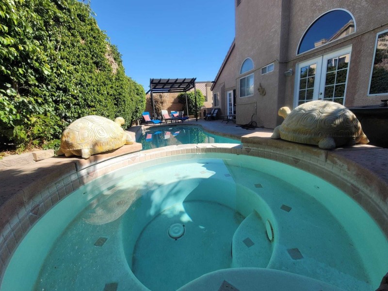 In the master bedroom you will find a king-size bed, large window, and French door to the pool. The master bathroom has a soaking tub, separate shower, walk-in closet, and double sinks. Rooms include master bedroom (king), bedroom two (queen), bedroom three (queen), bedroom four ( full). Laundry in garage.