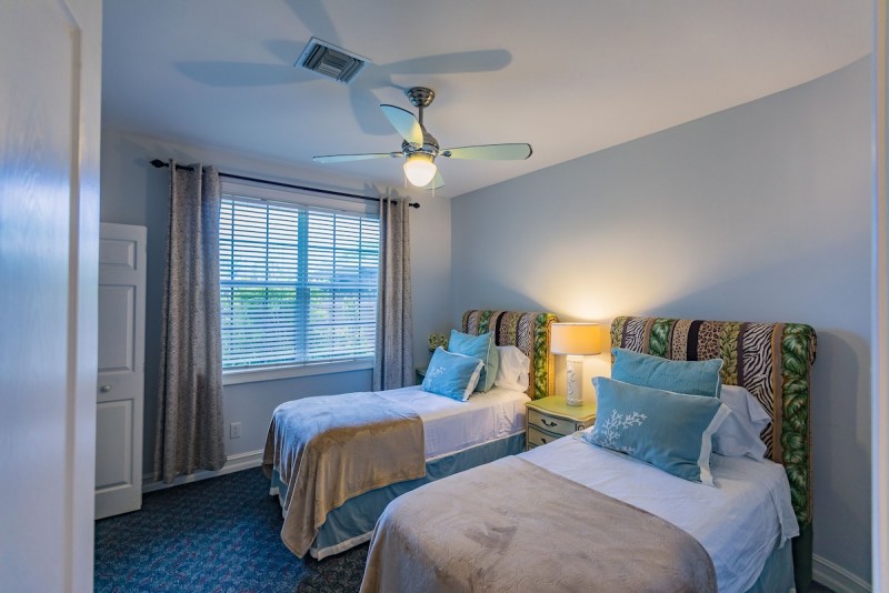 Third bedroom has two twin beds with custom-made upholstered head boards
