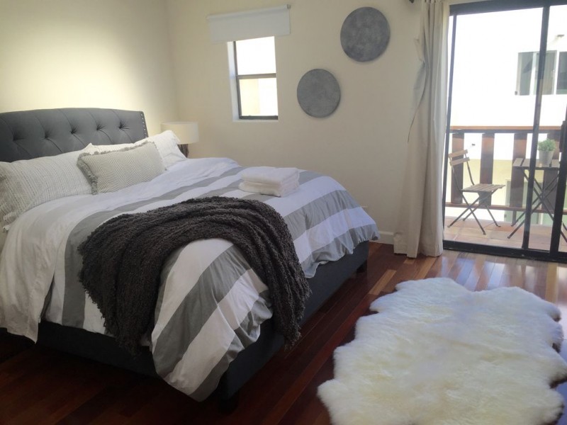 The 750 sq ft rooftop deck has a barbecue for grilling up delicious meals and enjoying the Southern California sunshine! There is also a 2 person hammock, outdoor dining seating for 8 with sun umbrella and lounge chairs. Sun bathers can enjoy the privacy the deck provides.