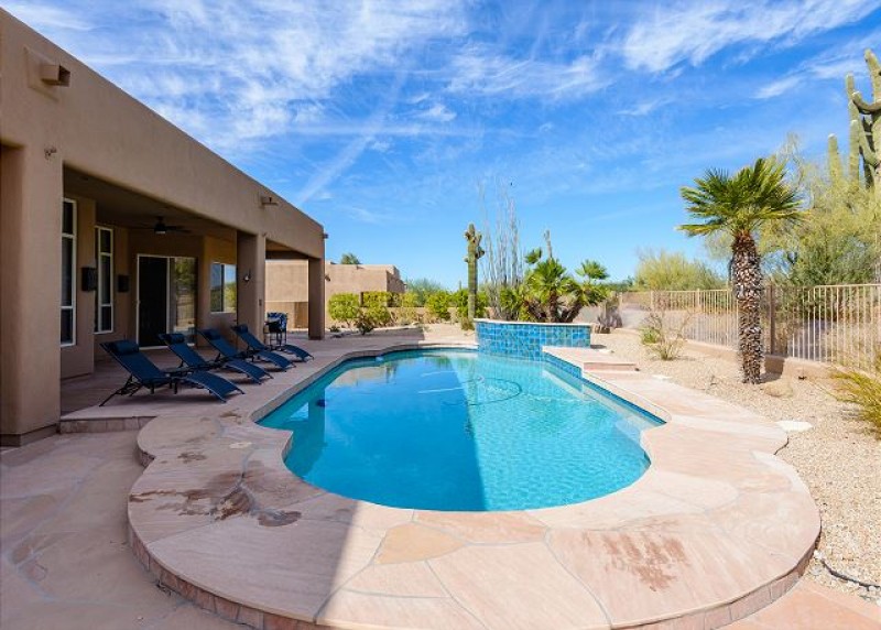 Casa Monument is a 3 bedroom, 3.5 bath single family family home located in the quiet and highly desirable gated neighborhood of Troon North. This single level home with no stairs sits on the famed Troon North Golf Course. The clubhouse, restaurant and bar is just up the road as well to enjoy! You will find a sparkling pool (option to heat) in the back-yard. The LARGE backyard offers many seating and dining options, a fire-pit and BBQ Grill.