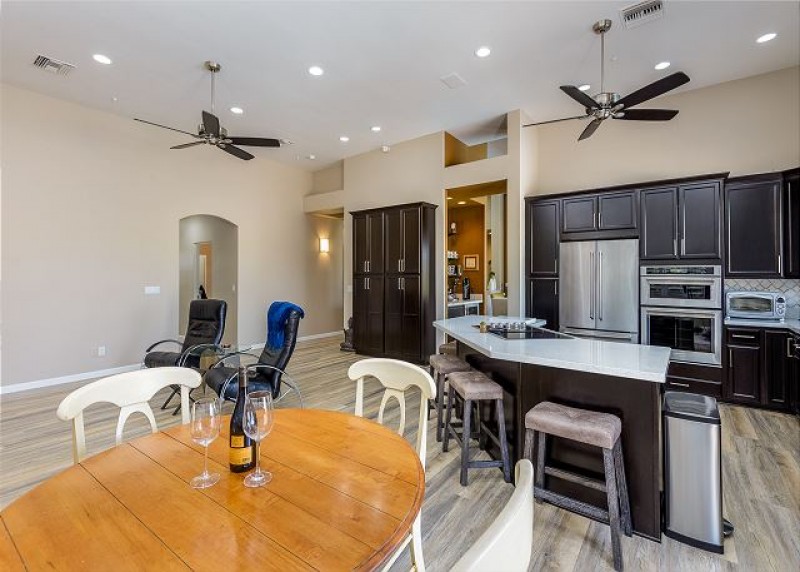 The interior offers a master bedroom with King bed and TV, large bathroom, walk in shower and walk in closet. The 2nd bedroom offers a Queen bed w/ TV and attached full bath. The 3rd bedroom offers 2 twin beds. You will also find a dedicated office with desk to get your necessary work done. 2 separate family rooms both offer TV and lounging areas. Fully stocked kitchen opens to great room with plenty of windows to the back-yard.
